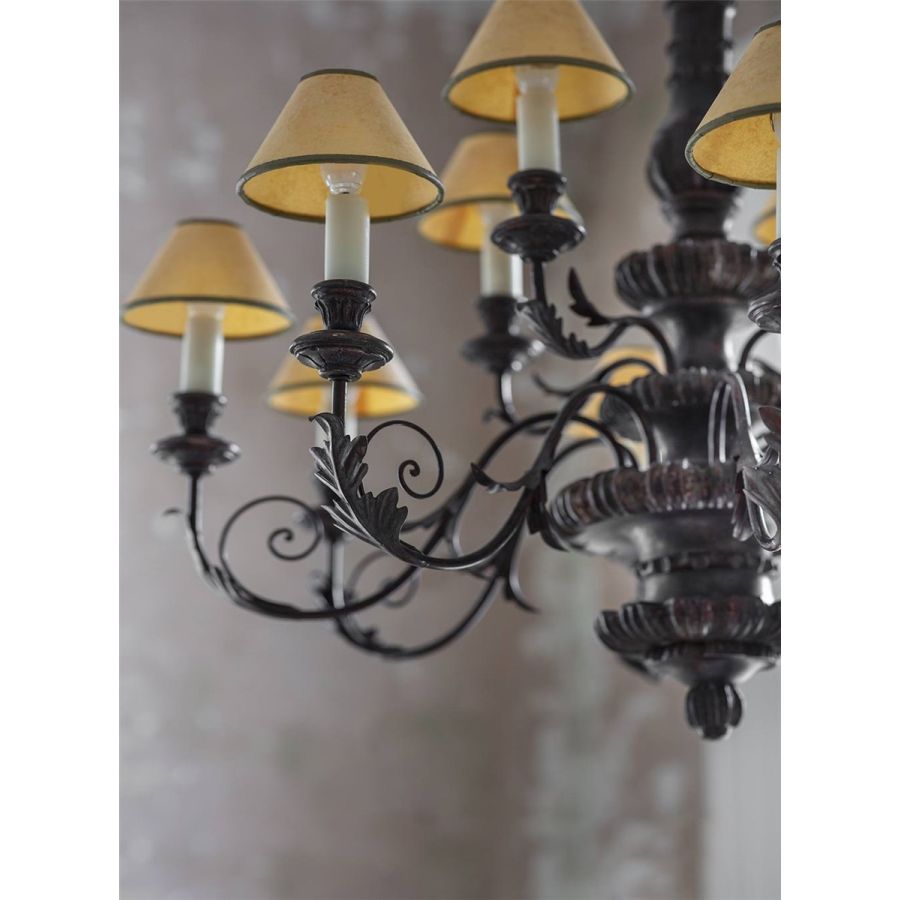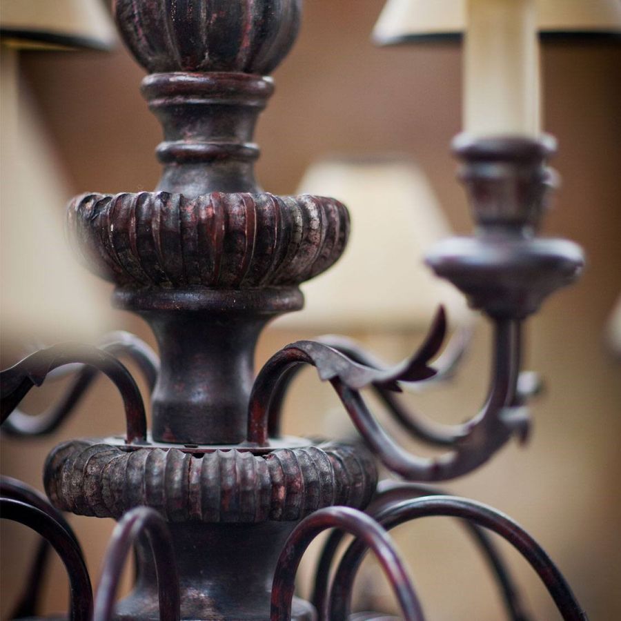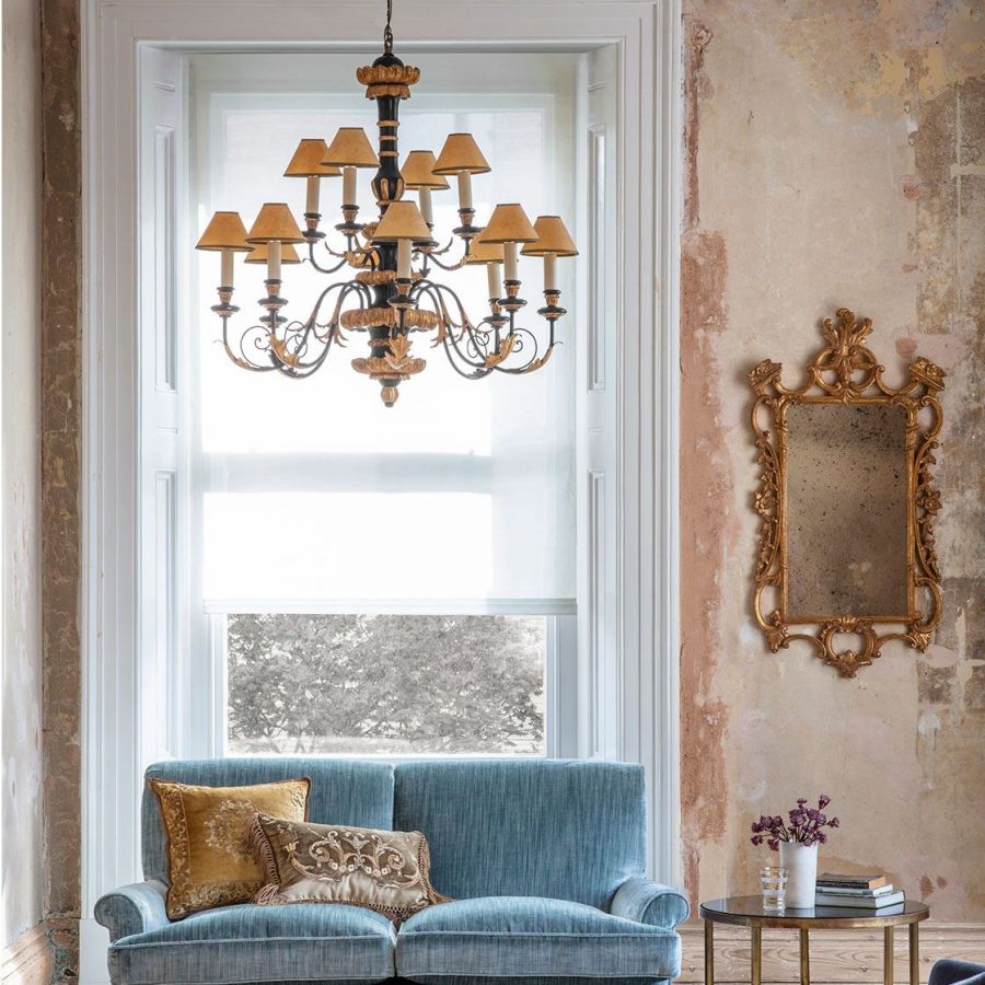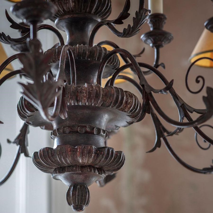 A decorative two-tier chandelier, the exquisite Chatsworth comprises of a carved central column and 12 elegant scrolling arms.