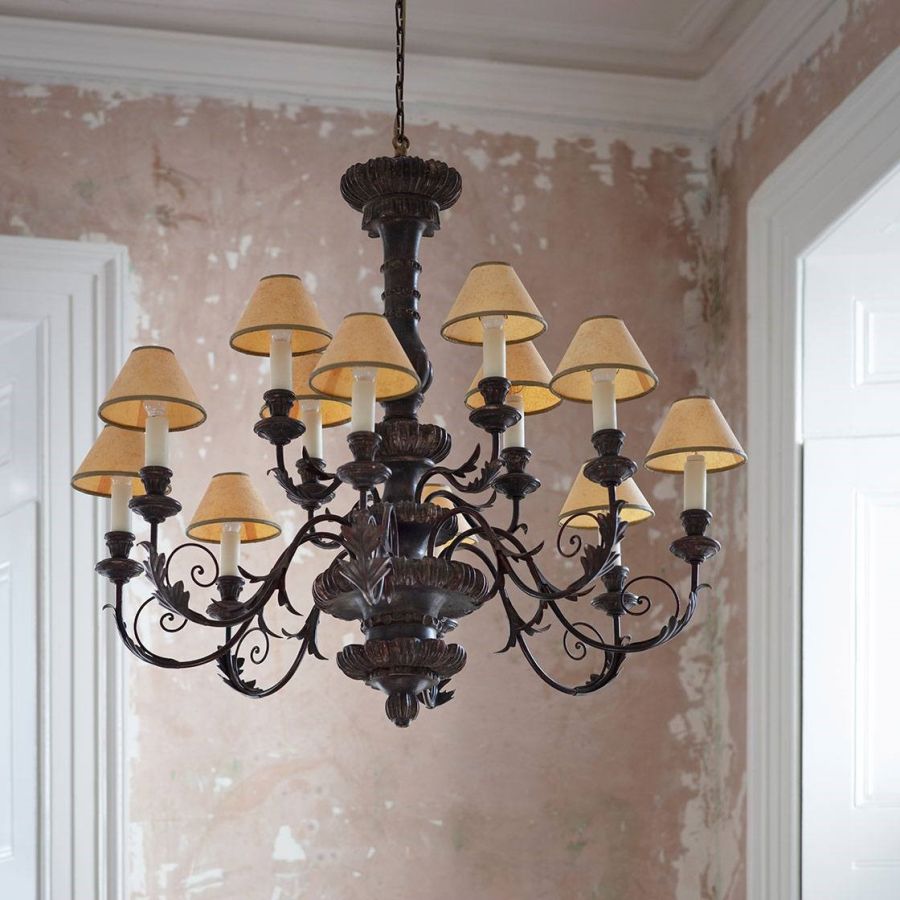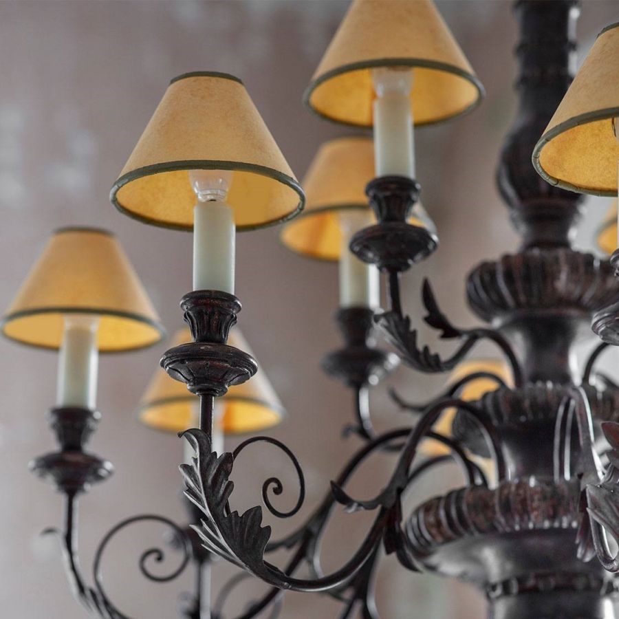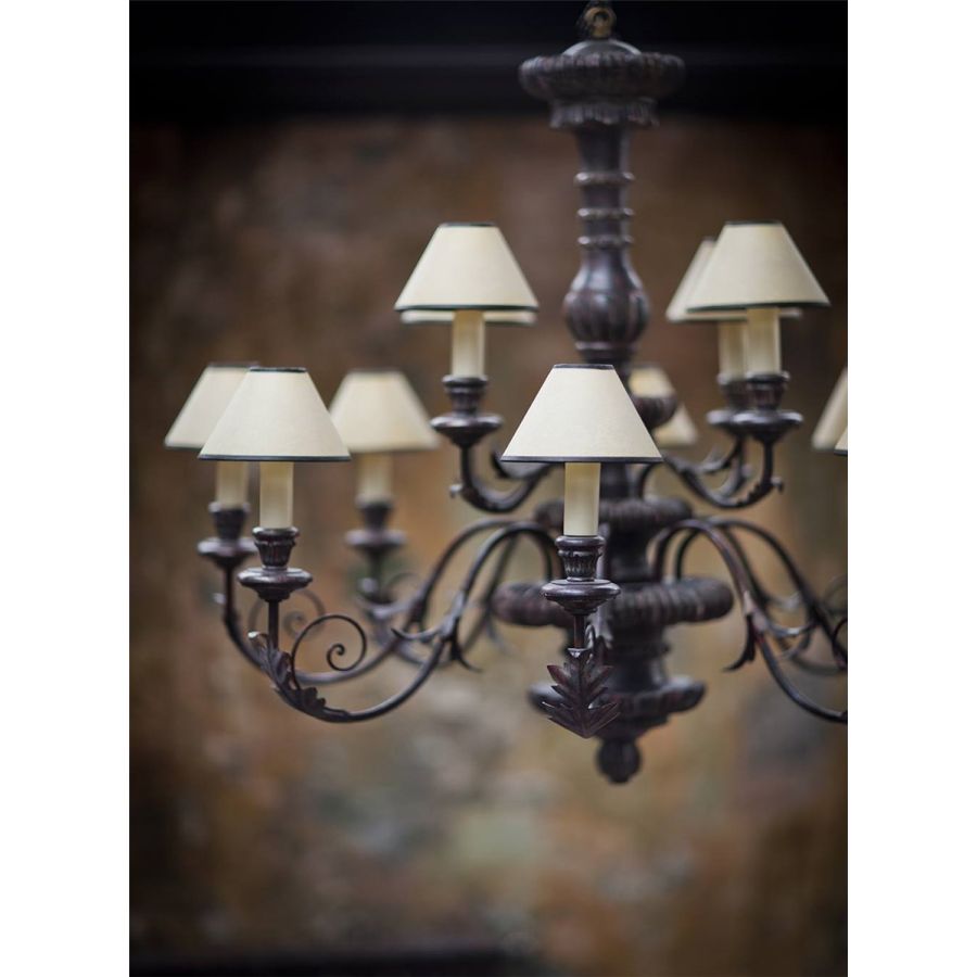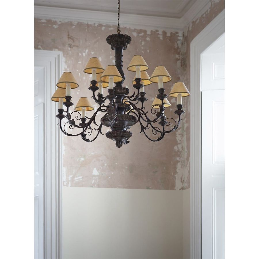 A decorative two-tier chandelier, the exquisite Chatsworth comprises of a carved central column and 12 elegant scrolling arms.