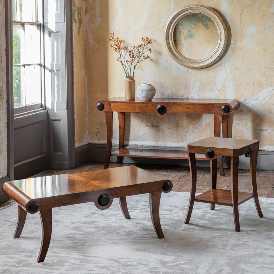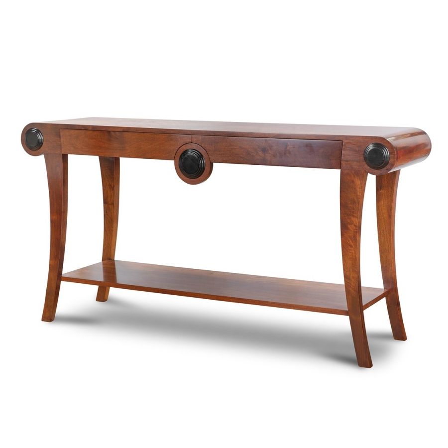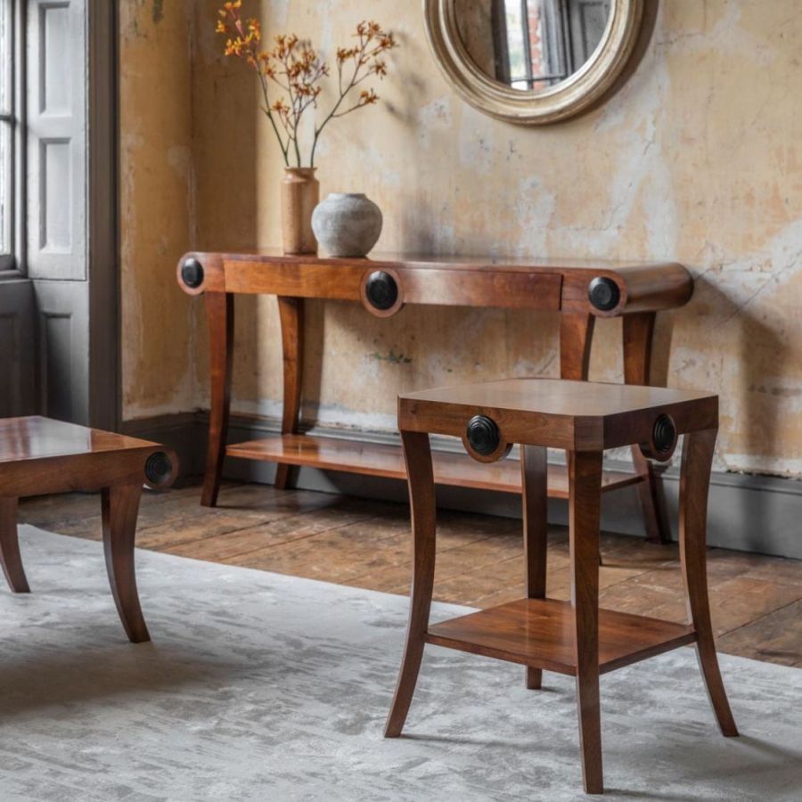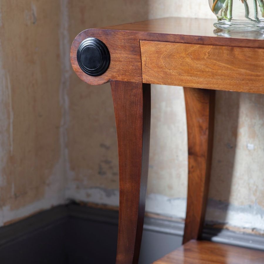 Crafted from solid walnut, the Art Deco inspired Duke console table is an example of fine English furniture at its very best. The graceful legs and exceptional finish deliver a statement piece for any setting.