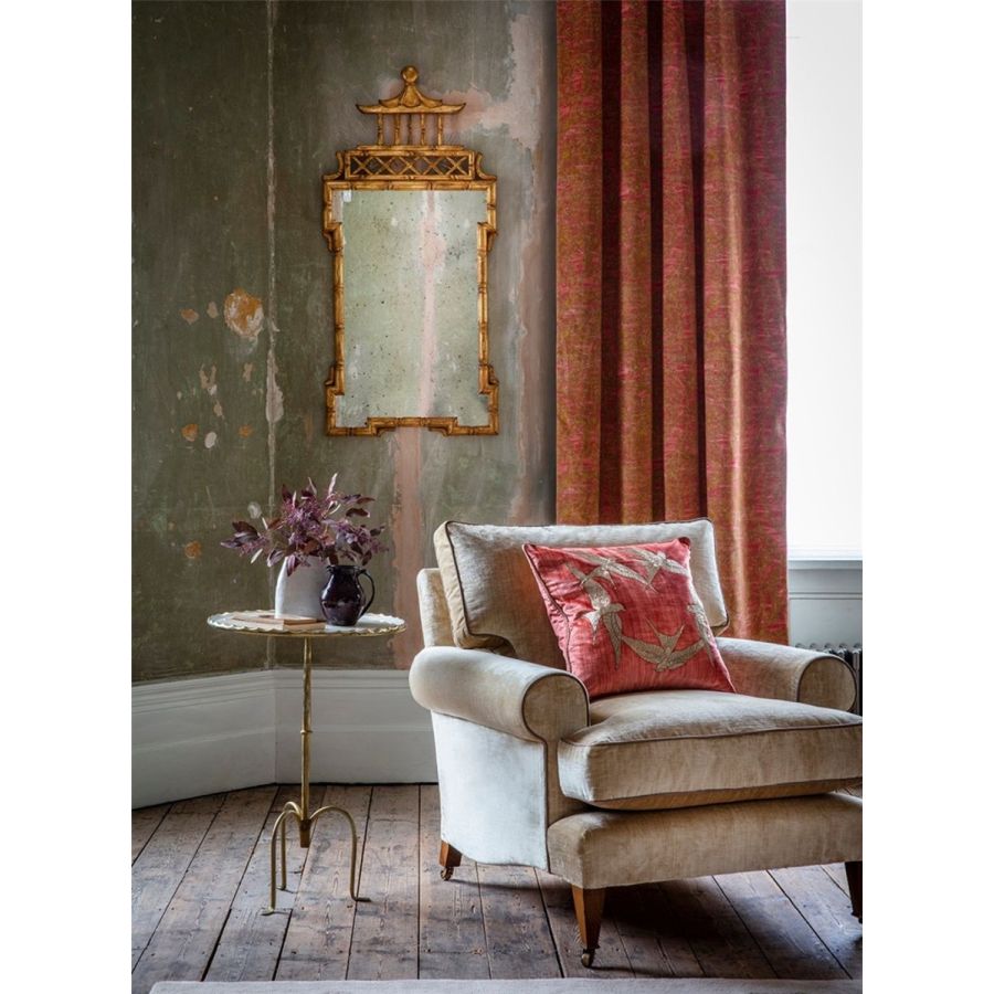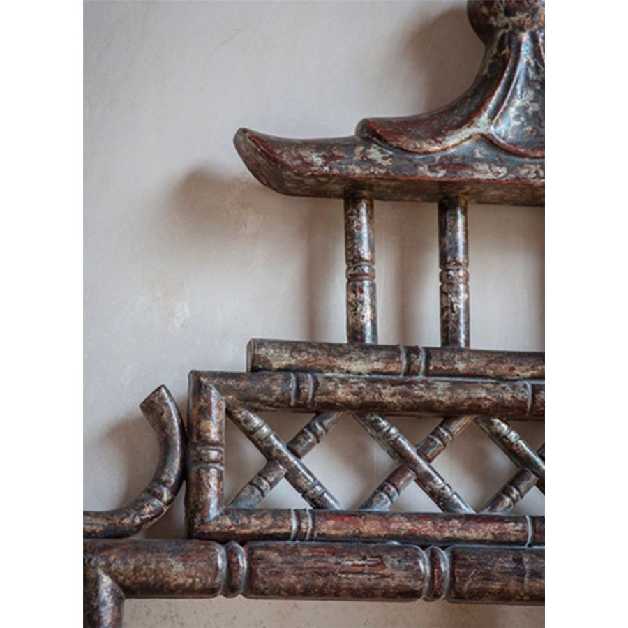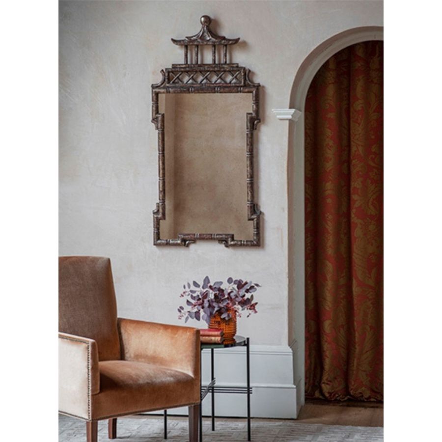 The striking Cathay mirror introduces faux bamboo and a crowning pagoda to create a Chinoiserie inspired piece.