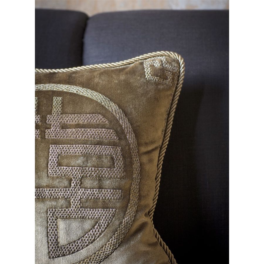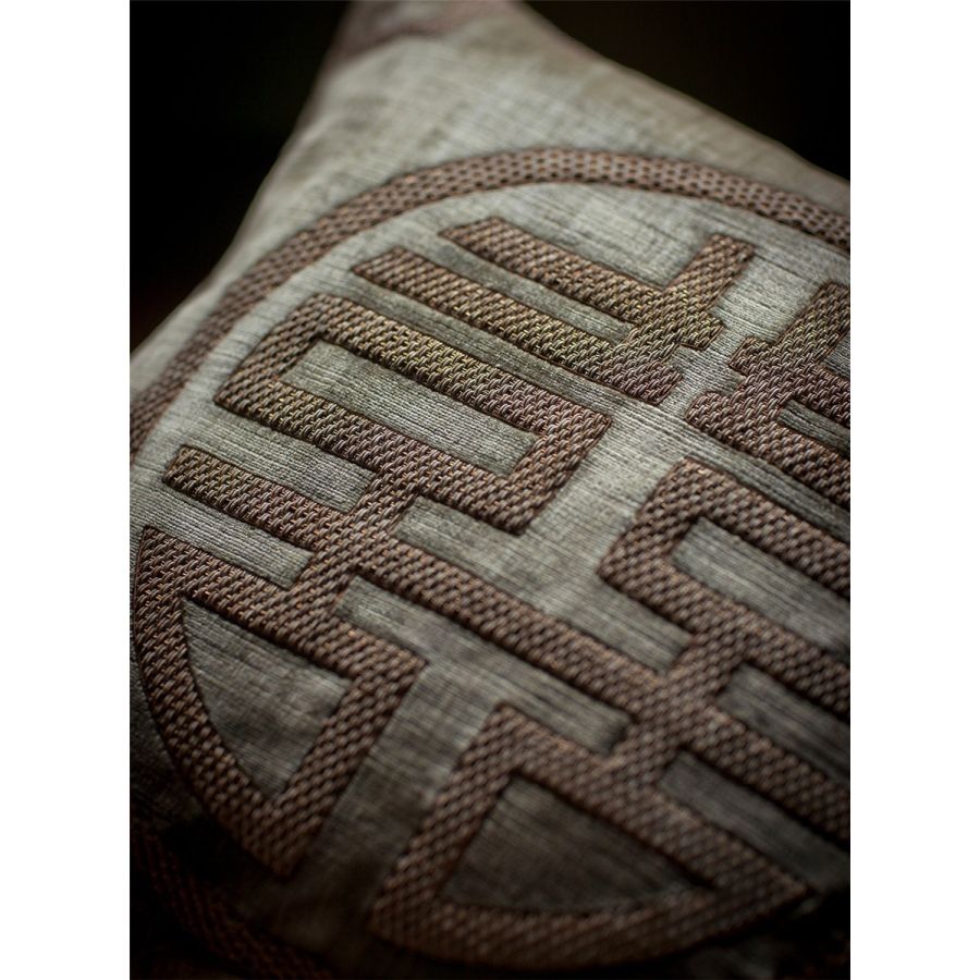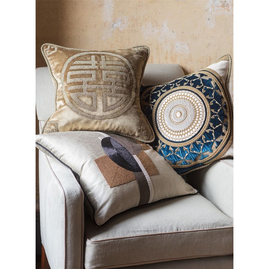 Skilfully embroidered in a richly worked metal thread to create depth, this design evokes good fortune in your home.