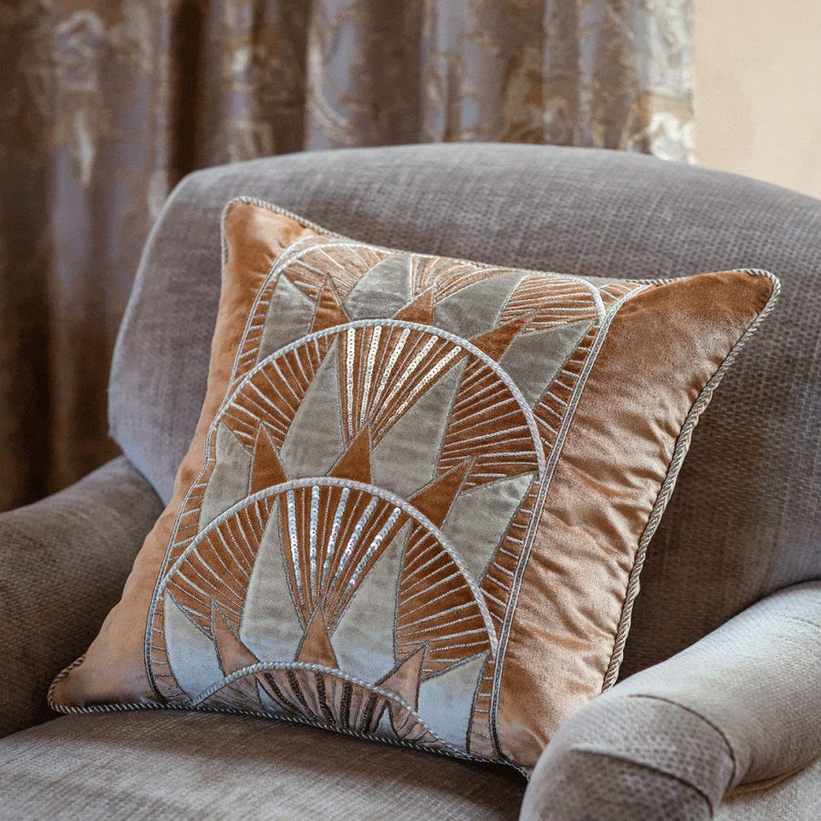Our Couture cushions are bespoke and hand embroidered to order. They can be created in fine gold or silver silk thread and embellished with freshwater pearls and semi-precious stones.