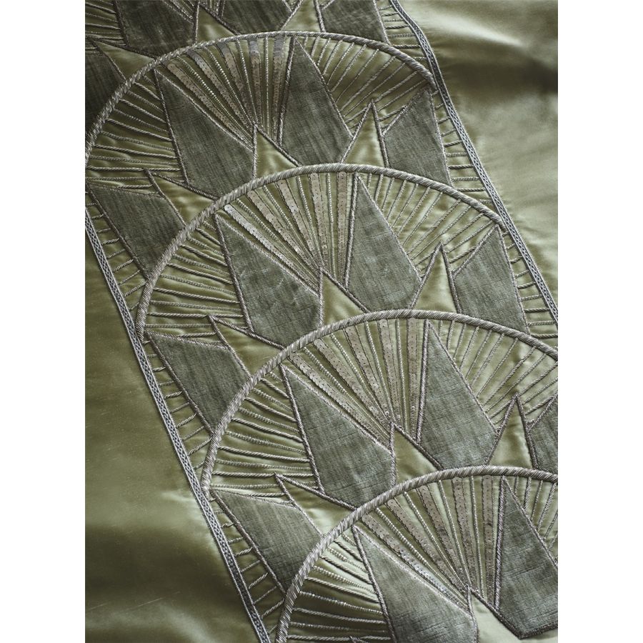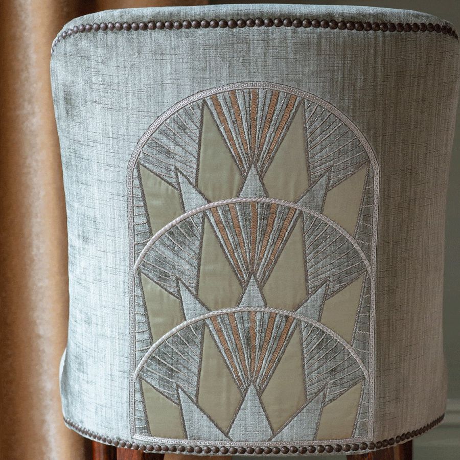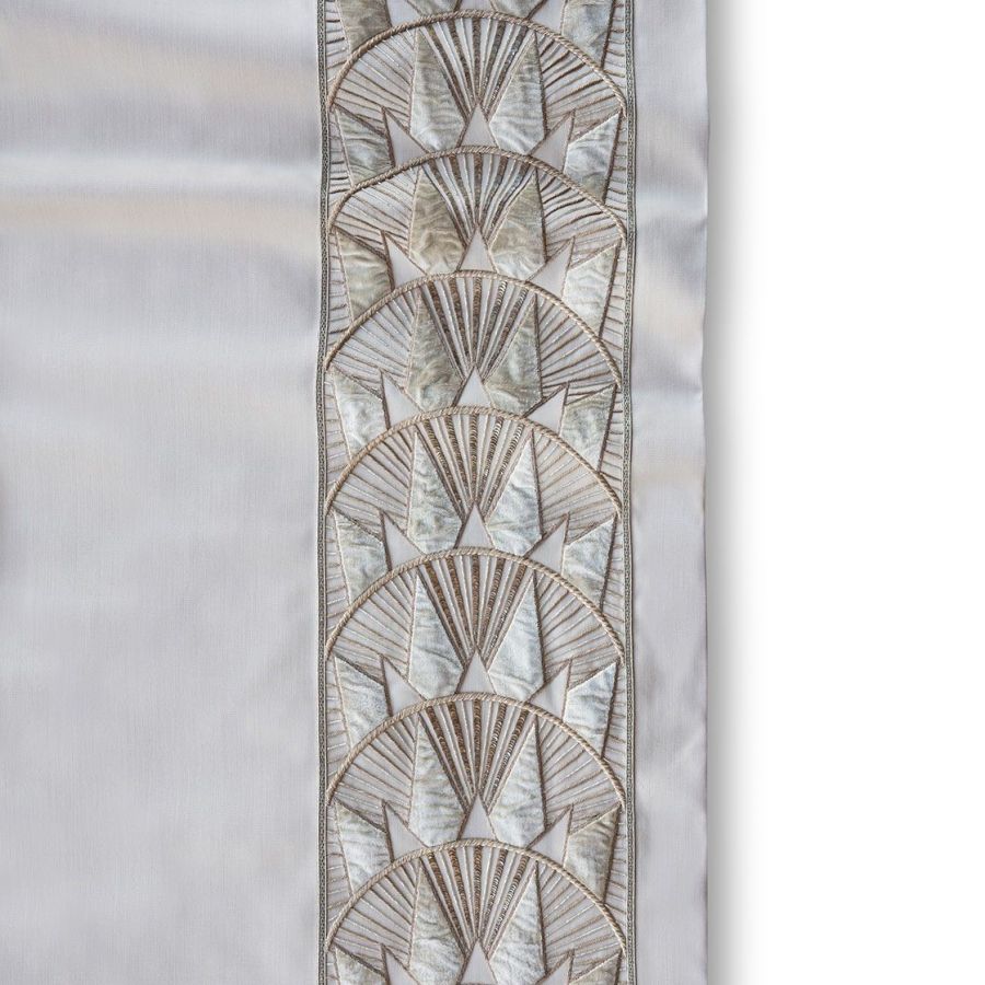 Inspired by the Art Deco era and the New York skyline, Rockefeller is a striking border design embroidered in metallic threads with contrasting applique fabric in silk or velvet.