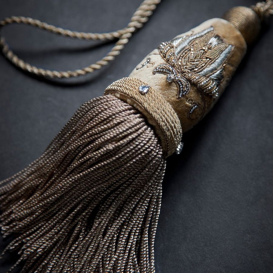 The Chiara key tassel has an elegant, foliate jewelled design that highlights the body, complemented by a decorative gold binding to the base.