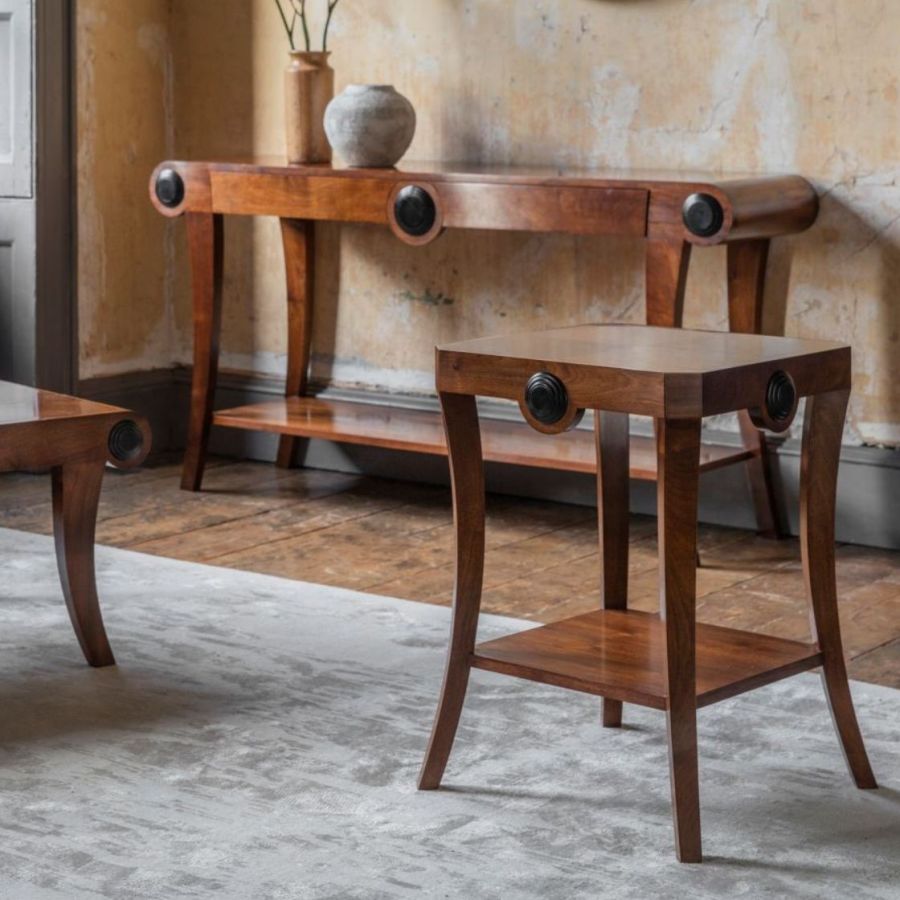 Created in our English workshop from solid walnut, the Art Deco inspired Duke side table sits gracefully on its own or as part of the wider collection.