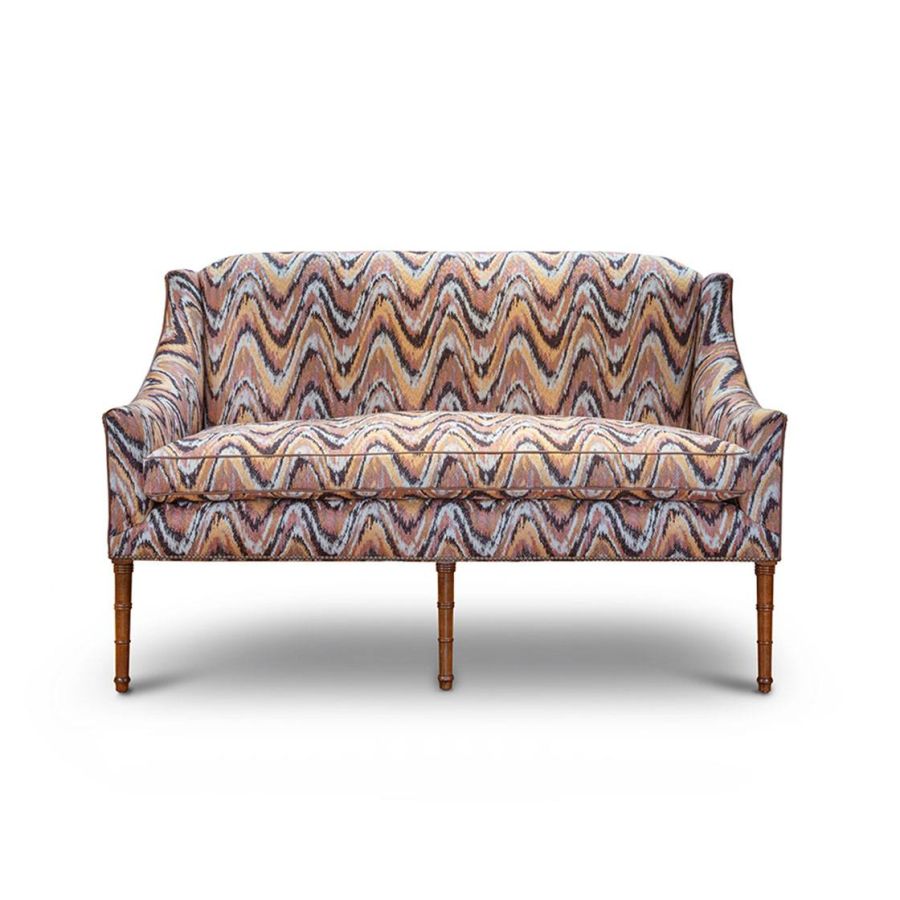The versatile Alexandra sofa has perfect classical proportions and turned faux-bamboo legs inspired by the late Georgian fashion for chinoiserie. Also available as a chair.