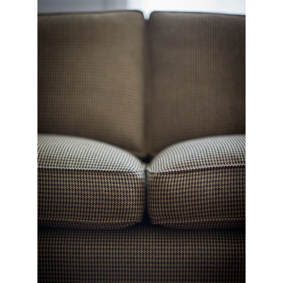 This exceptionally comfortable modern sofa has clean lines and separate cushions for its seat and back. Also available as a chair.