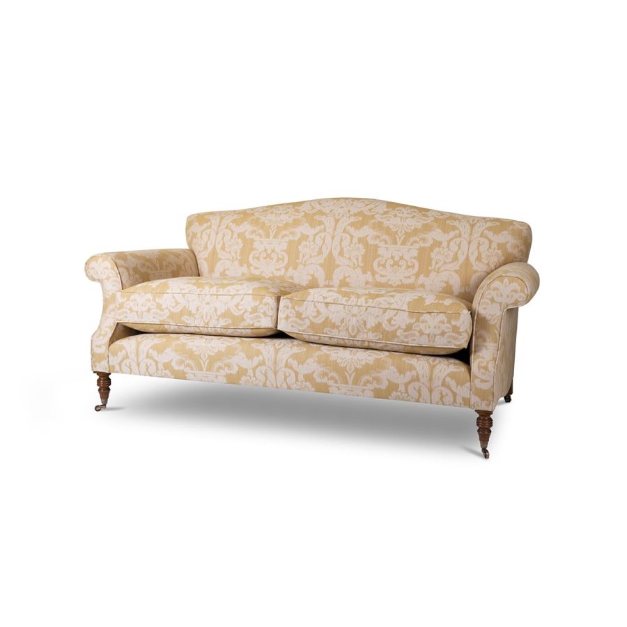 Lavish and beautiful, the Georgian sofa pays homage to the best of 18th century design. Its high camel back and deep scrolled arms make it a sumptuously inviting statement piece.