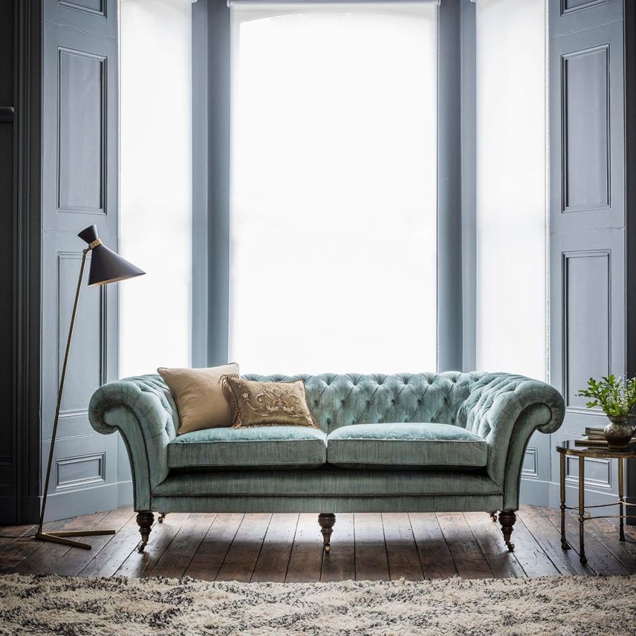 With its deep buttoning and generous scrolling arms and back, the Grenville has all the elegance and comfort of a classic Chesterfield sofa, and is a jewel in our crown.