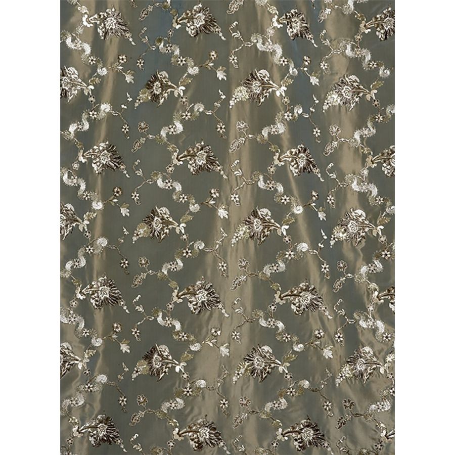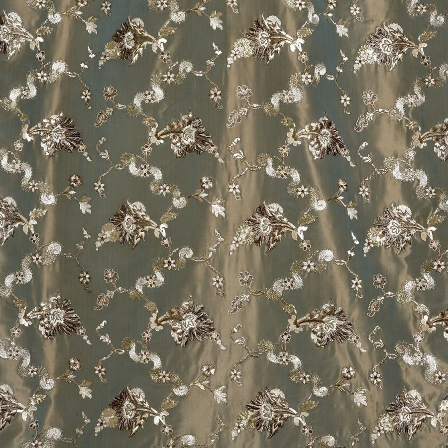 Fidelio is a delicate embroidery created in antiquated metal threads. Its enchanting design incorporates entwined branches of small flowers and leaves.