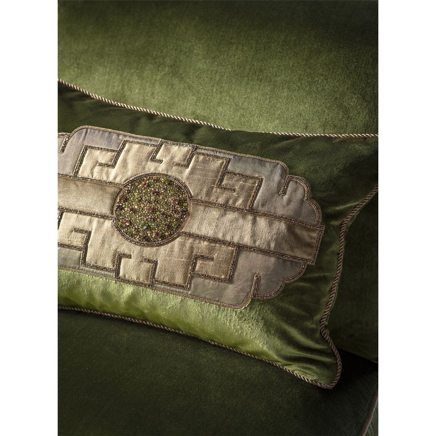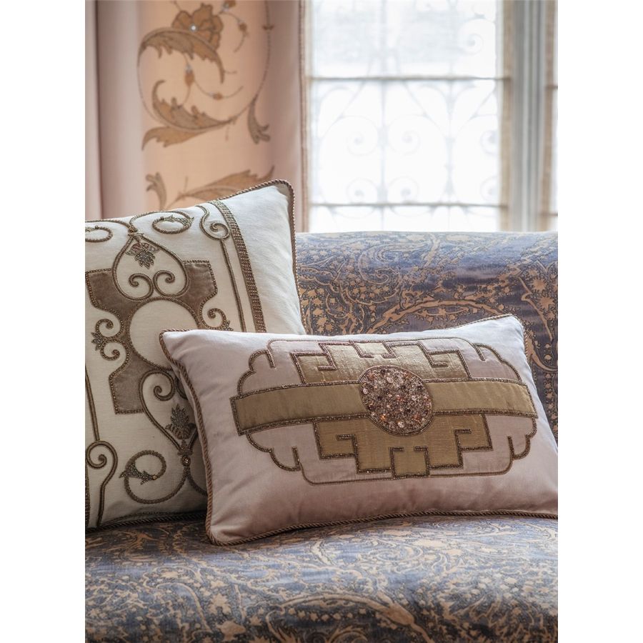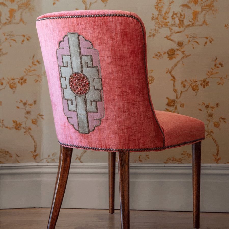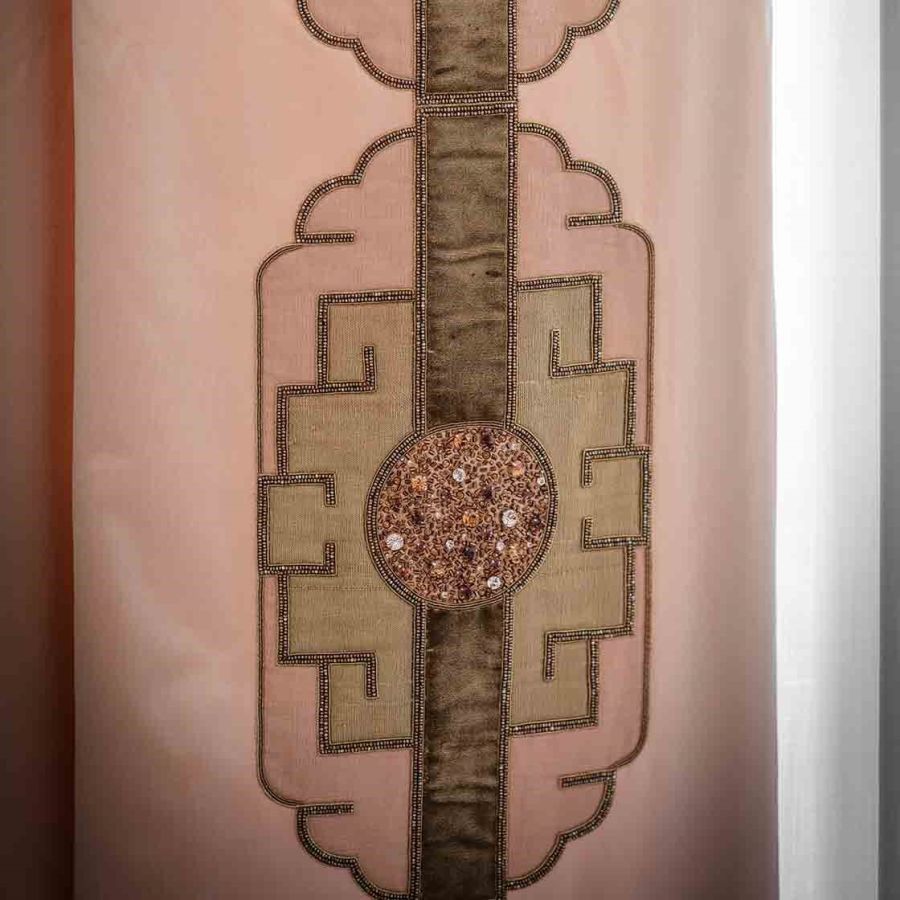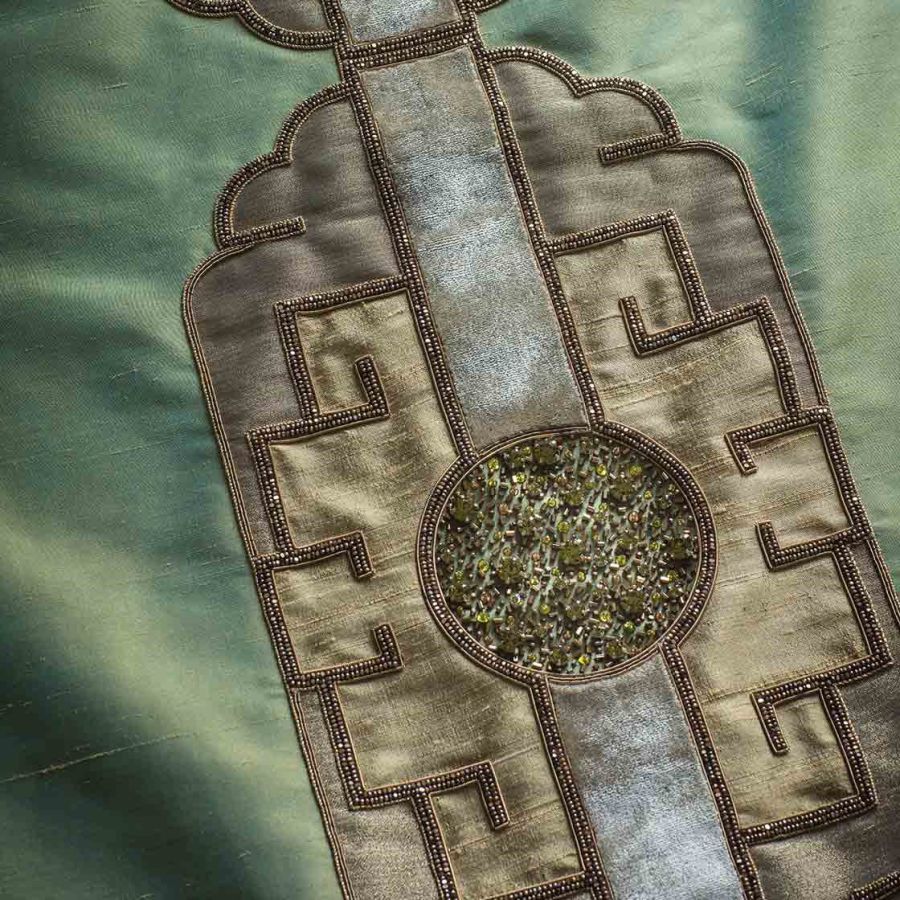 Named after the Marlow play about the Asian Emperor Timur. This is a majestic and lavish design which makes for a striking confident statement with an elegance that can only be achieved through the expression of hand embroidery.