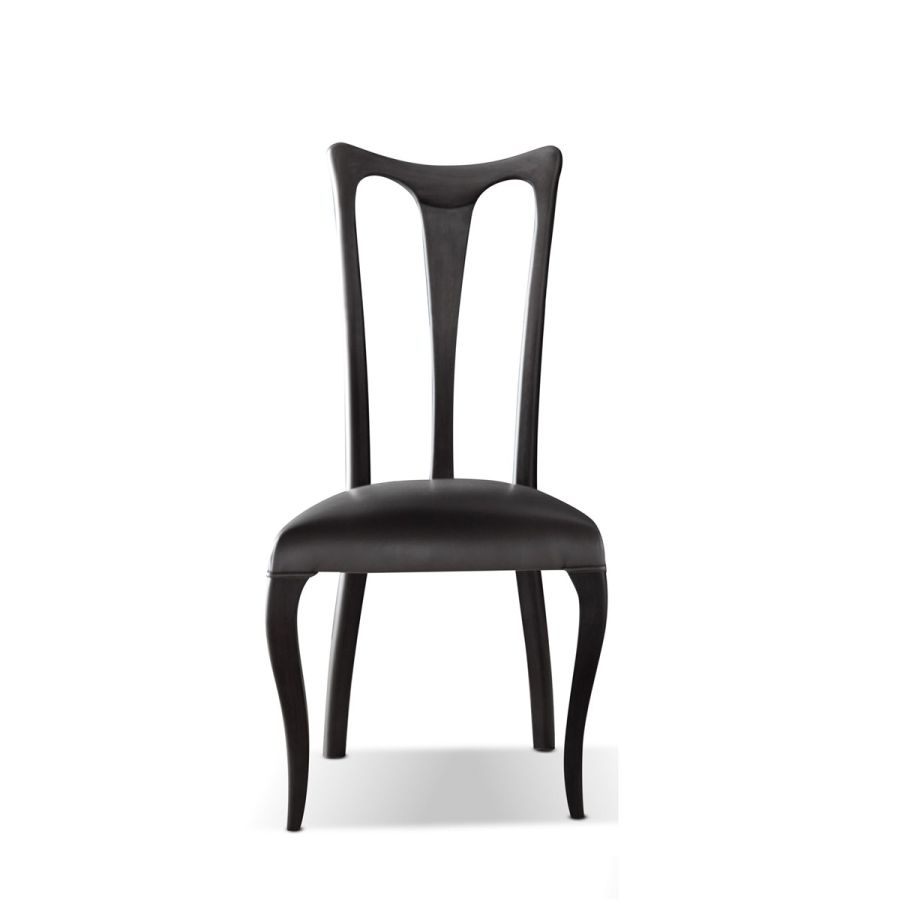 Antares chair follows with elegance and refinement the sculptural and harmonious lines of the Antares table leg. The wooden backrest, lightened of any paddings, recalls the classical symbols of the Thonet chair, with a contemporary interpretation. Finishings and materials for the upholstery of the seat can be choosen among a wide choice from the sample set.