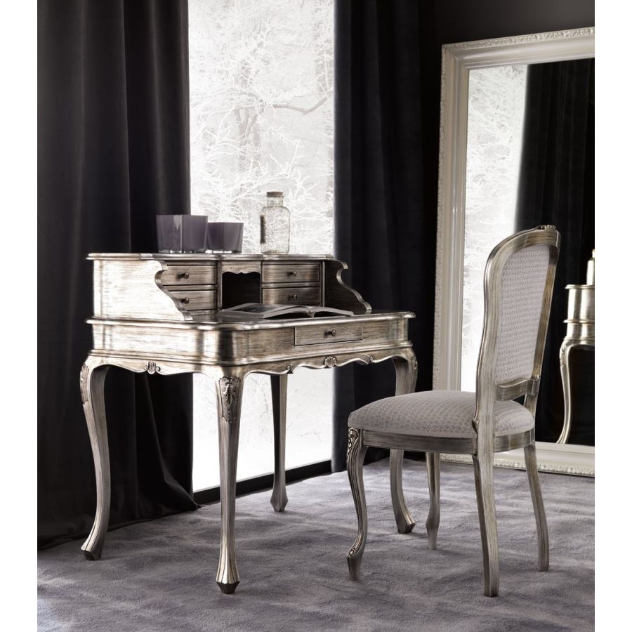 Romanticism and classic style for Giusy chair with solid beechwood structure, and carved details. A wide choice of finishings for the structure to combine to a large selection of lavish leathers and fabrics makes Giusy the perfect choice for sensational matchings. Perfect for the dining room but also for the bedroom and the office.