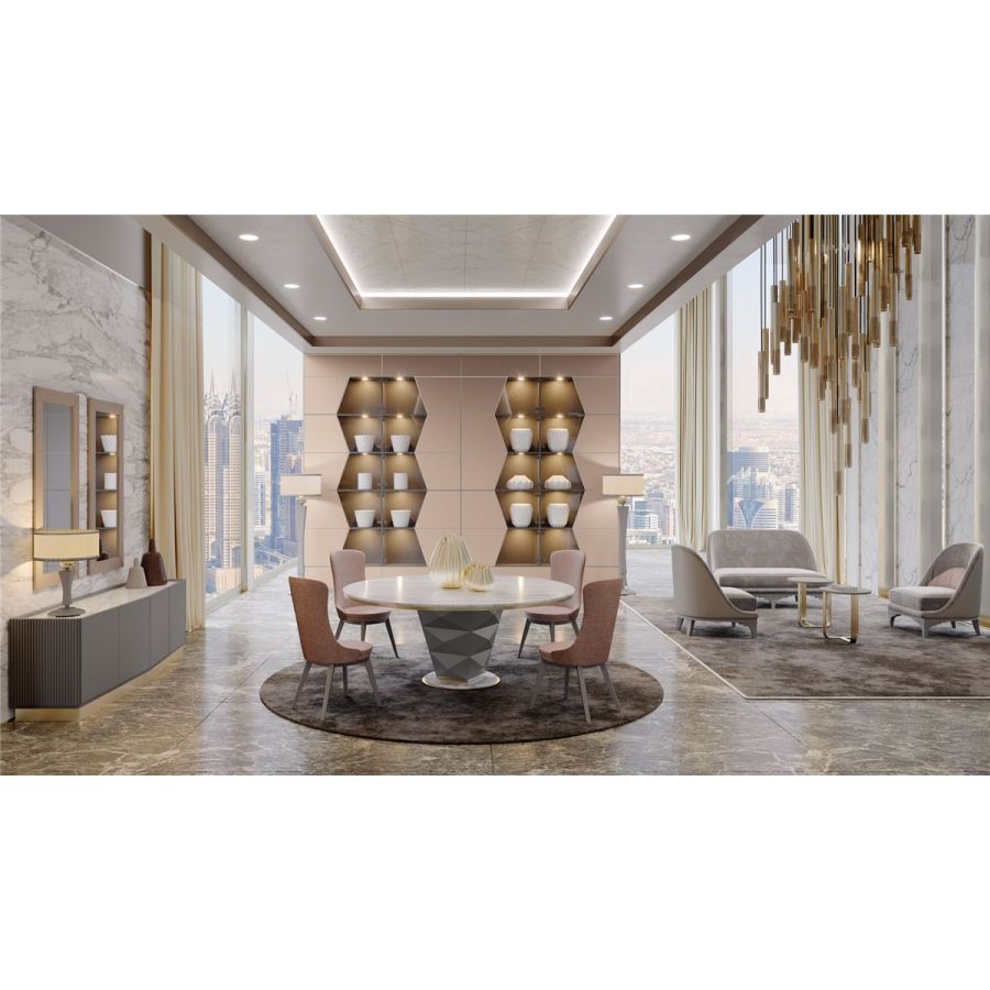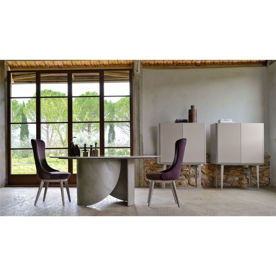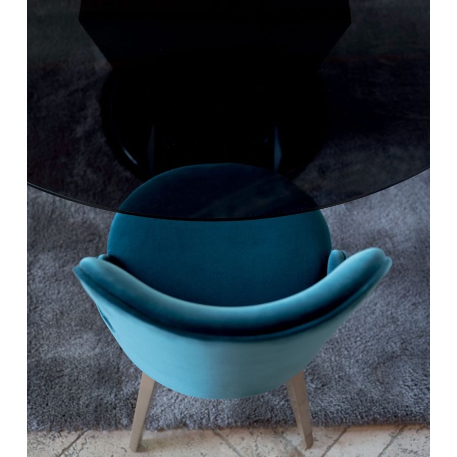 Simplicity joined to unique design, reach of details and precious manufacturing. Robin chair can be upholstred in two different fabrics or leathers for the structure and the cushions, offering to the designer the possibility to create incredible striking combinations.