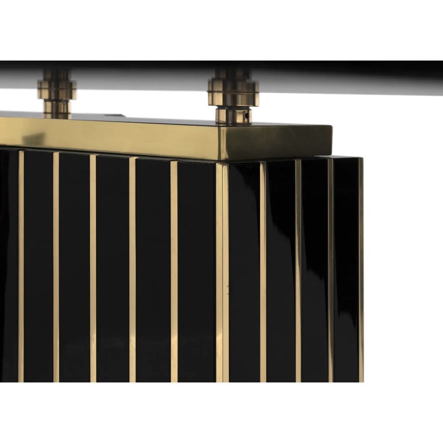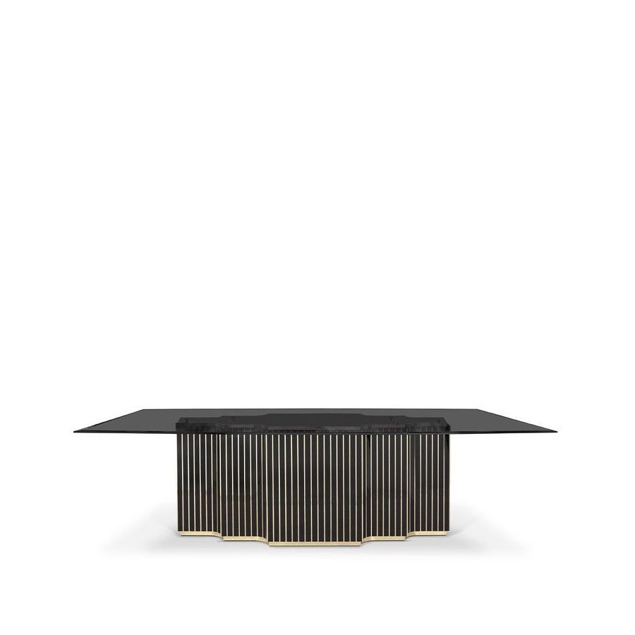 Inspired by one of the most famous hotels in Las Vegas, the Bellagio Dining Table was designed as the perfect solution for every occasion, seamlessly blending business with pleasure in a luxurious environment. With a robust structure made from brass, wood, and marble and a rectangular glass top, the Bellagio is an ideal choice for dining rooms, meeting rooms, and offices.