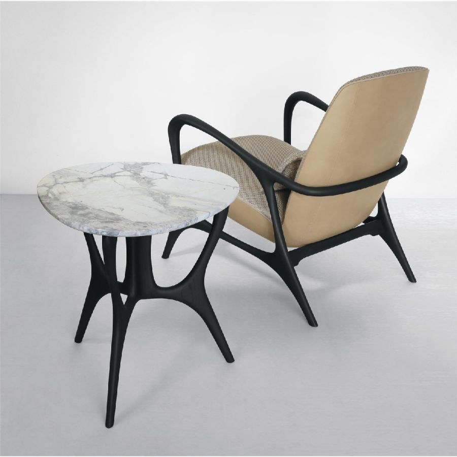 This armchair is crafted from solid ash wood with a sophisticated grey stain, offering a stylish and durable base. The interior is upholstered with soft fabric, while the exterior is finished in luxurious leather, creating a beautiful contrast and adding depth to the design. The combination of grey-stained ash, fabric, and leather gives this armchair a modern yet timeless appeal, making it an ideal addition to both contemporary and classic interiors. Its unique blend of materials ensures both comfort and style, making it a standout piece in any room.