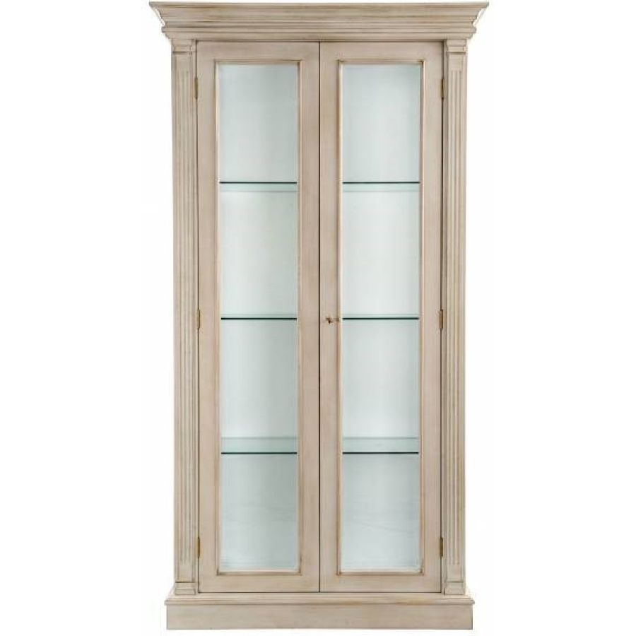 The classic-style glass cabinet seamlessly combines elegance and functionality in one exquisite solution. The piece is finished with LAFM lacquered brushed French tempera in white meringue, complemented by a base of gold leaf. Designed by Bellotti Ezio Team, it embodies the perfect balance of refined aesthetics and practicality.