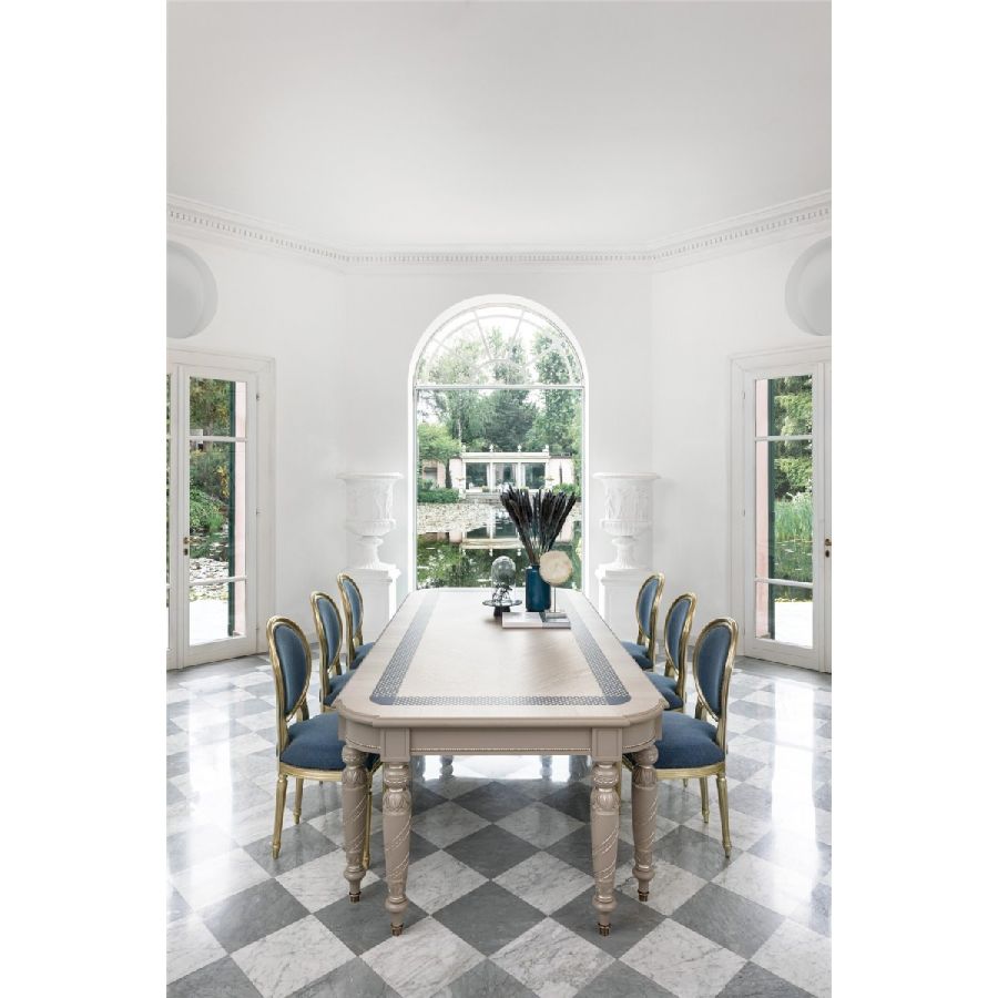 Crafted from carved wood and upholstered in fine fabric, it features a luxurious Silver Gold leaf finish. Designed by Bellotti Ezio Team, this masterpiece embodies the excellence of Italian design and craftsmanship.