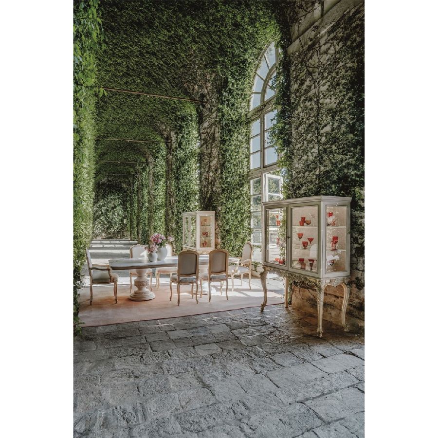 Crafted from carved wood, this chair features an OCH gold leaf patinated white meringue finish, highlighting its exquisite detailing. Designed by the Bellotti Ezio Team, it embodies Italian craftsmanship and classic charm. Not removable cover.