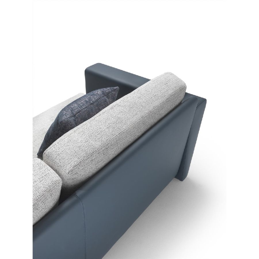The feet are made from aluminum alloy with a satin-nickel finish in natural or black. The structure is crafted from solid fir wood with poplar plywood parts. The springing is on elastic bands, and the shell is padded with polyurethane of varying densities, while the backrest and seat are filled with polyurethane covered in feather flaps. The upholstery is available in either fabric or leather.