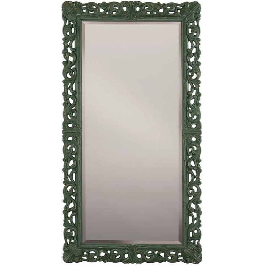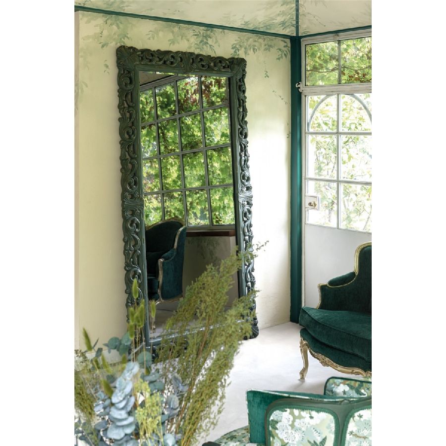 This magnificent Bellotti mirror, with its intricately carved wooden frame, brings personality, charm, and prestige to any environment. The frame is finished in lacquered and brushed green lotus French tempera, while the fumé mirror adds depth and elegance to the piece. Its refined design transforms any space into a sophisticated and inviting area. Designed by the Bellotti Ezio Team, this mirror is a true statement of luxury and craftsmanship.