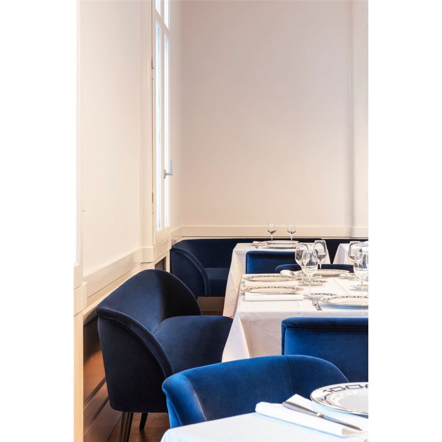 Familjen Pauline är ledande produkt inom sittkollektionen. Den inkluderar matstol, barstol, matbänk, liten fåtölj, liten soffa och puff. Pauline kännetecknas av en retrostil och en kurvad design. De kurvade armstöden tillåter att man sitter bekvämt i en slimmad designprodukt. Den är fri från alla hörn eller kanter och berikas av koniska ben med en metallspets. Denna produktfamilj är en hymn till gemenskap och till delandet av trevliga och avkopplande stunder.