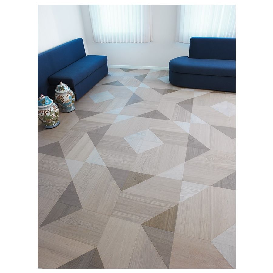 Med en stark personlighet består ICA trägolvet, i Modul 1, av en enda modul med två element i ljus och mörk ek. Olika mönster skapas varje gång genom att ändra modulernas ordning och placeringen av träslagens färger. Tillverkad på mycket tunna 3-lagersplankor, med endast 10.2mm total tjocklek, är ICA idealisk som väggbeklädnad. De slutliga lackeringslagren gör det till ett trägolv klassificerat i kategorin `hög trafik`.