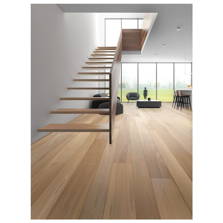 Det förfinishade valnötsträgolvet, även känt som Europeisk, finns tillgängligt i 2-lagers 13 mm brädor, lämpligt för flytande läggning, limning och för golvvärmesystem. Förutom standardlackeringen är det möjligt att begära den antibakteriella beläggningen baserad på silverjoner. Silver Protector är idealiskt för att möta höga saneringsbehov och för en ökad hälsosamhet i hemmets rum. För områden med hög trafik, å andra sidan, finns Hi-Tech högresistent finish tillgänglig för att ge en yta som är motståndskraftig mot nötning från fottrafik och mot ljus