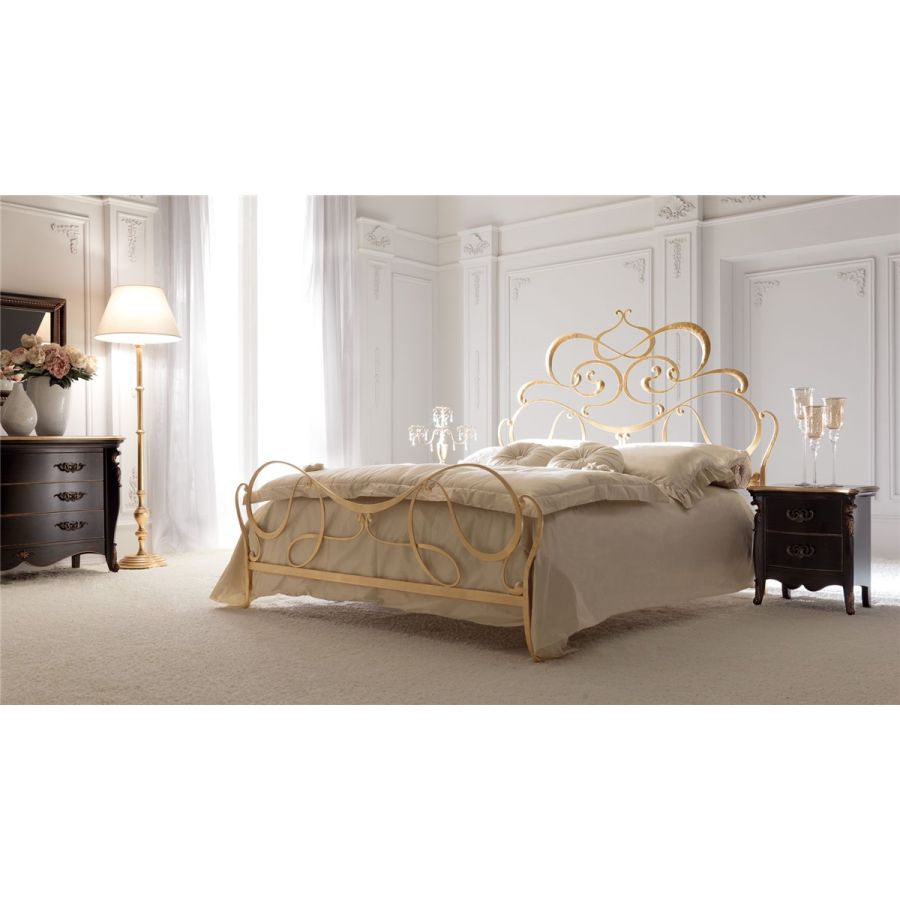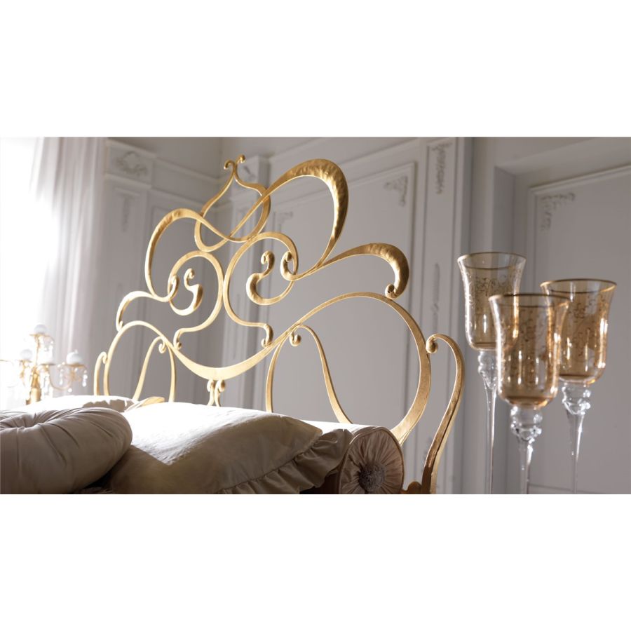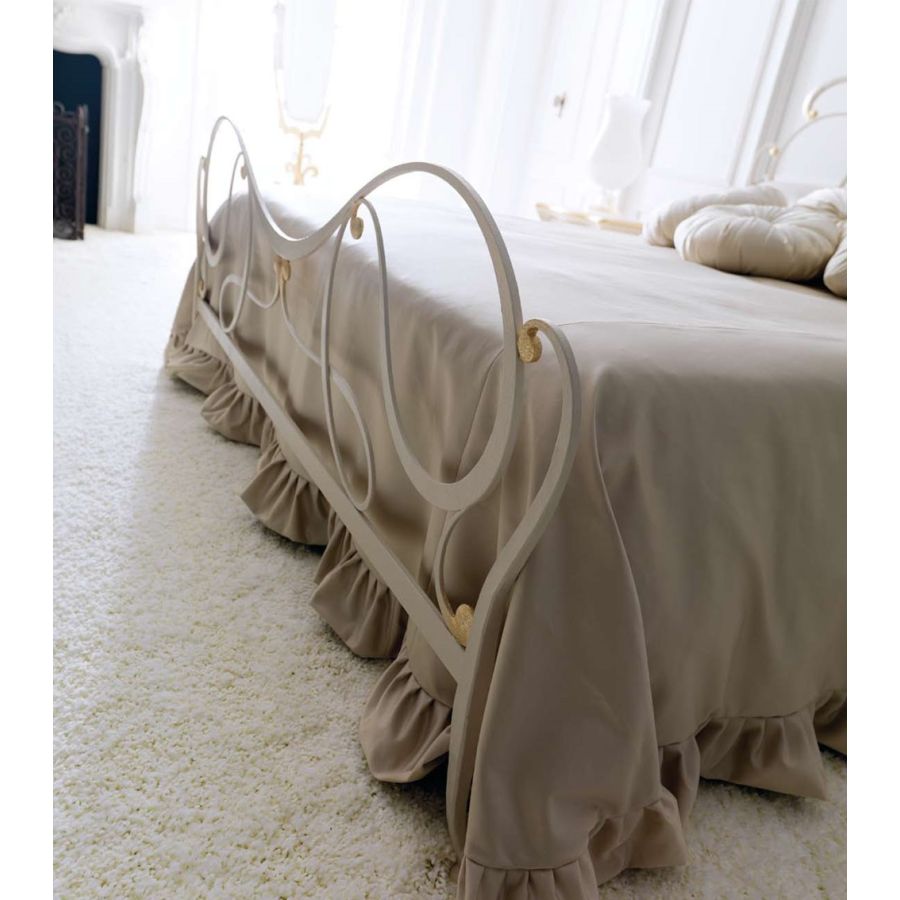 Bed with headboard and footboard in forged iron with elegant and refined lines. Elegant and refined iron bed with forged bedhead and bedfoot. A regal bed, with light and airy shapes thanks to the use of wrought iron drawing peaks and curves on the beautiful bedhead.