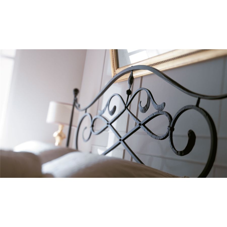 A classic, solid and traditional hand wrought iron bed with elegant bedhead and bedfoot. Strong lines with a romantic behaviour characterize the structure enhancing classic harmony. A bed for everyday and for special moments. Also available without bedfoot and padded bedrail with decorated wooden legs.