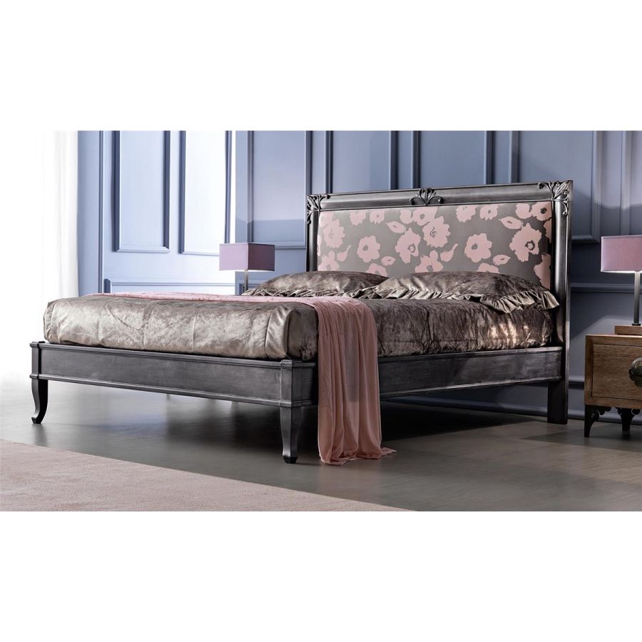 Classic bed with clean and elegant lines, with headboard, bands and footboard in solid wood. The frame of the headboard houses wood carvings to be decorated with contrasting finishes for a more evocative effect. The warm and reassuring headboard padding is available in smooth and capitonné versions. Also available shaped bands and footboards for more classical creations.