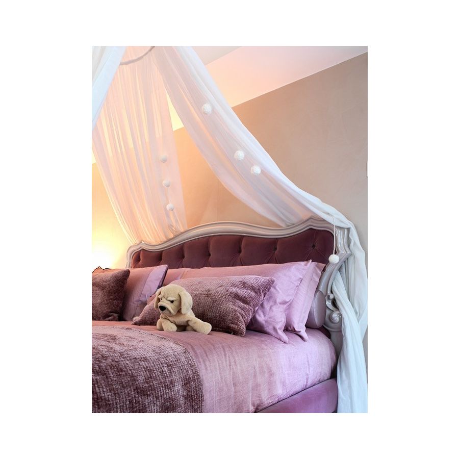 Wooden bed with a classic and elegant line with a shaped curved headboard covered with capitonné or quilted technique. Padded bedhead panel in capitonné or quilted upholstery. Giusy is a cozy bed with soft and enchanting shapes: a delicate homage to the tastes of past fascination, in a contemporary and clean version. Bed frame and shaped feet in solid wood or in iron padded and covered in fabric, leather or eco-leather.