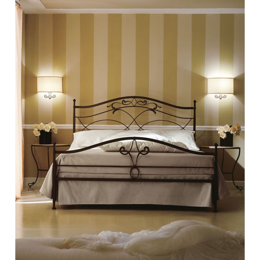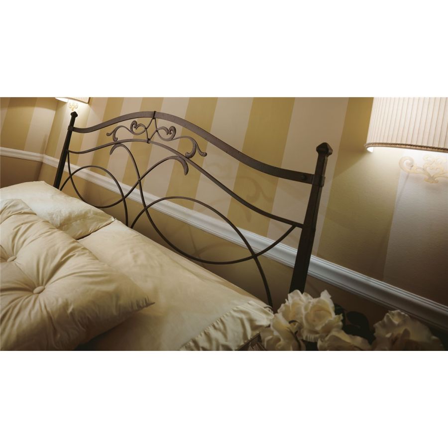 A full hand-forged and polished iron bed, with classic, elegant and delicate headboard and bedfoot.