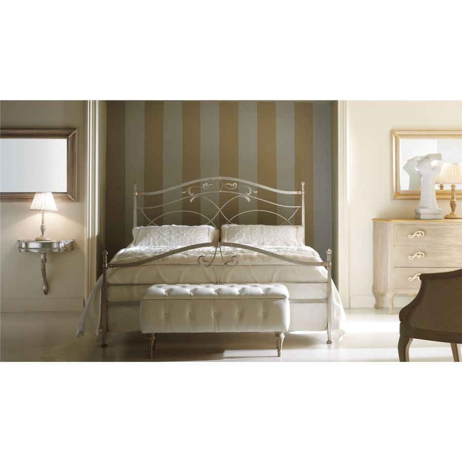 A full hand-forged and polished iron bed, with classic, elegant and delicate headboard and bedfoot. Zeus has a timeless style, customizable using a large choice of beautiful finishings. Also available without bedfoot and padded iron bed rail and wooden legs.
