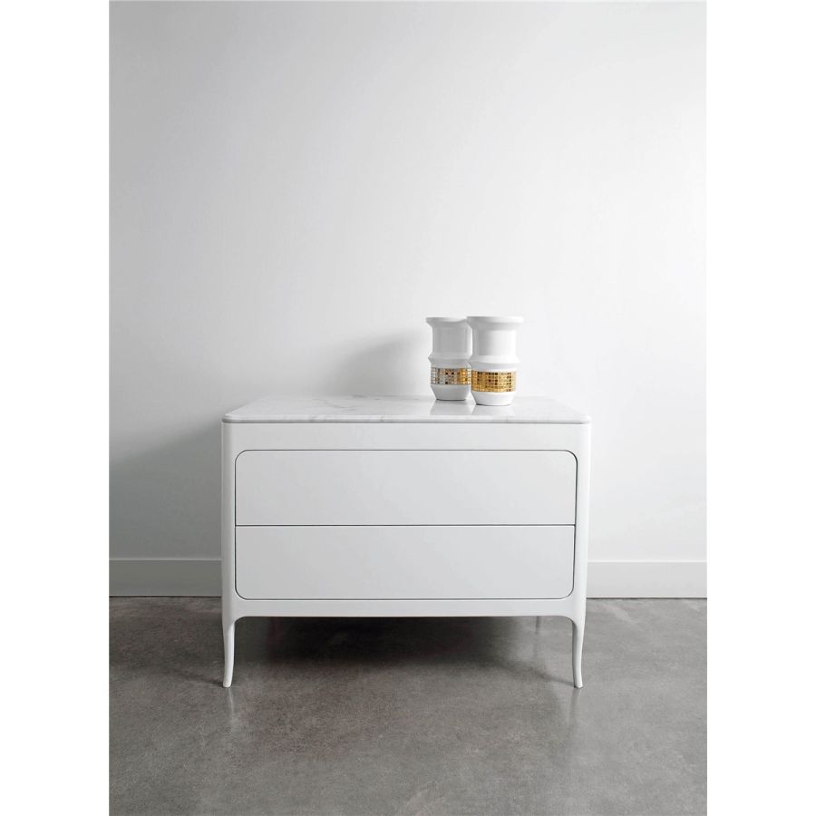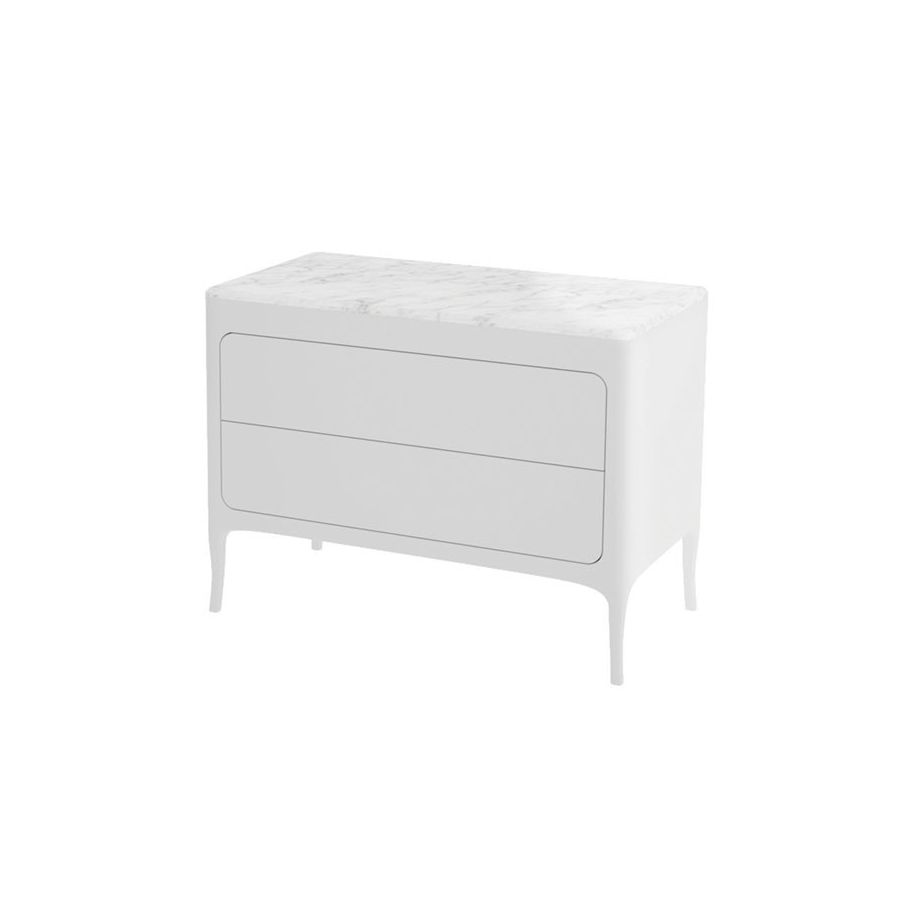2-Drawers lacquered wooden drawer unit with top in bianco carrara marble.