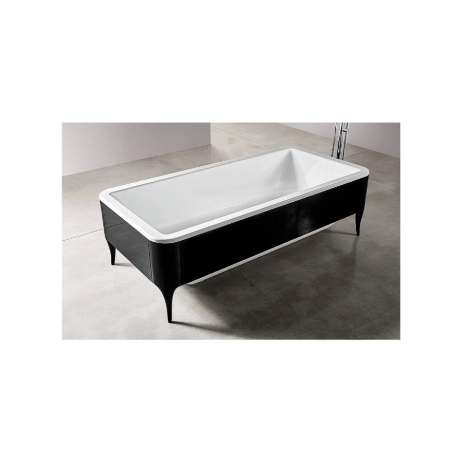Bathtub in metacrylic with high gloss varnished wooden frame.