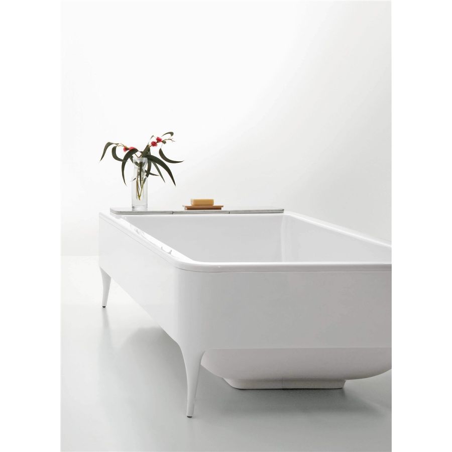 Bathtub in metacrylic with high gloss varnished wooden frame.