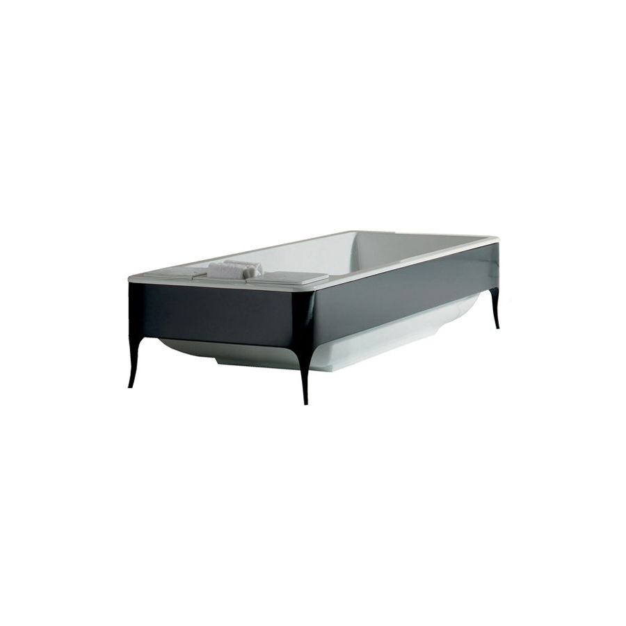 Bathtub in metacrylic with high gloss varnished wooden frame.