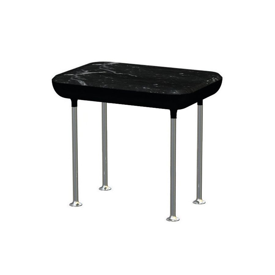 Table with chrome aluminium structure and top in nero marquinia marble.