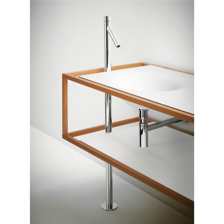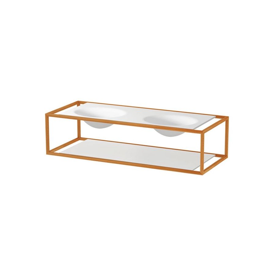 Double cristalplant® washbasin. Counter with steel structure covered with larch wood.