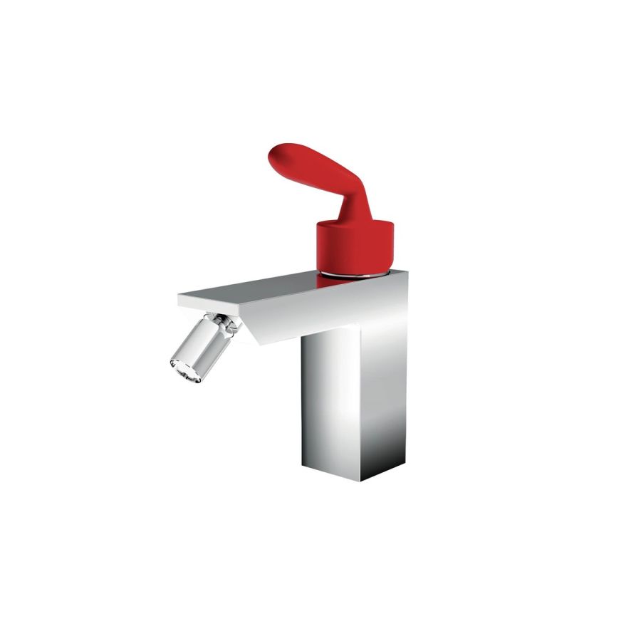 Single lever bidet mixer with red lever.