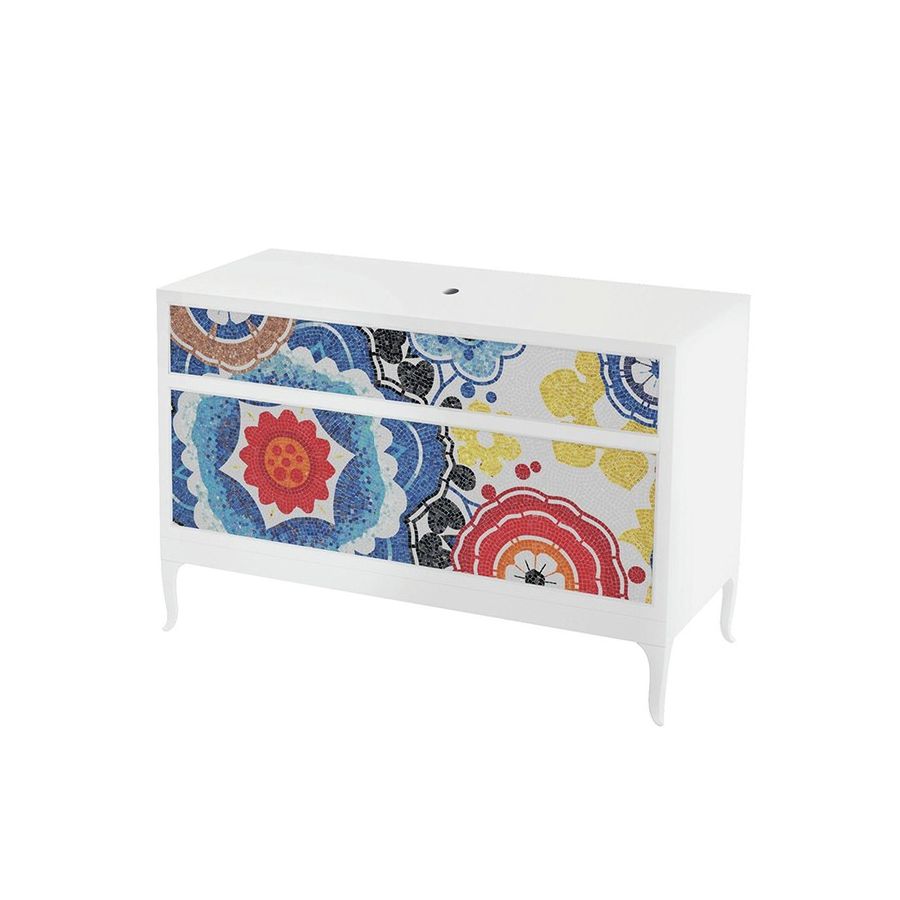 Polished lacquered mdf/hdf drawer unit with glass mosaic* (bloem rosso).