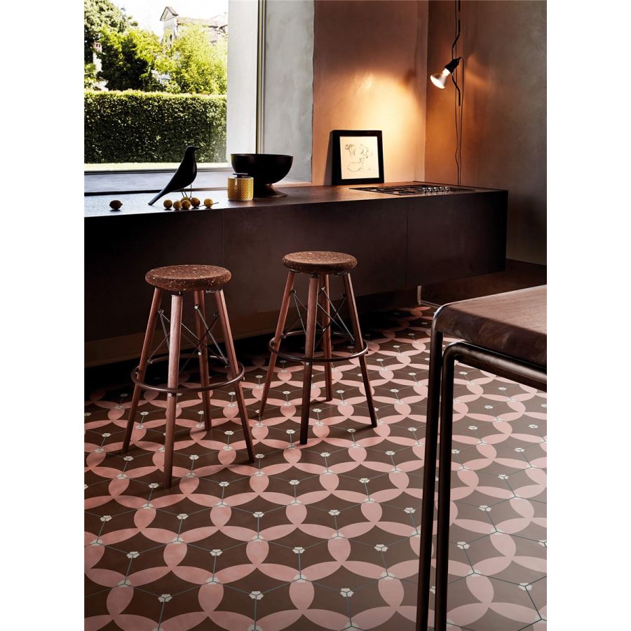Tiles made entirely by hand using high-strength cement blended with coloured oxides. Square (200x200 mm) or hexagonal in shape (200x230 mm), 14 mm thick, the tiles are cold pressed and treated to protect their surface and ease the cleaning.