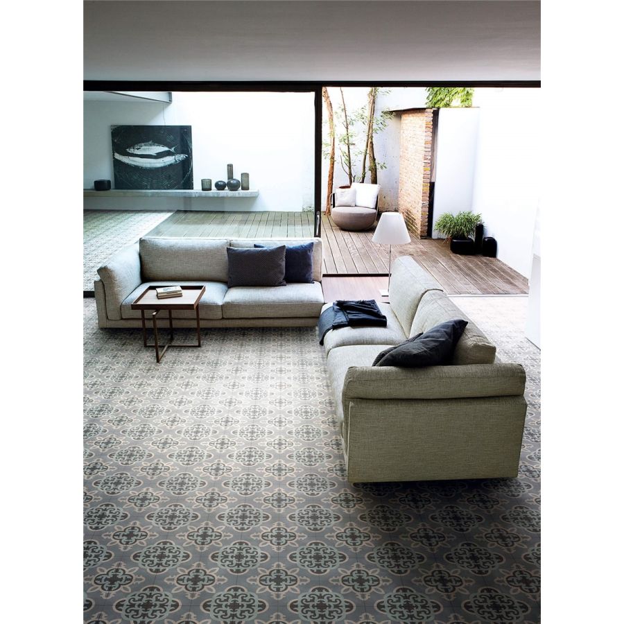 Tiles made entirely by hand using high-strength cement blended with coloured oxides. Square (200x200 mm) or hexagonal in shape (200x230 mm), 14 mm thick, the tiles are cold pressed and treated to protect their surface and ease the cleaning.