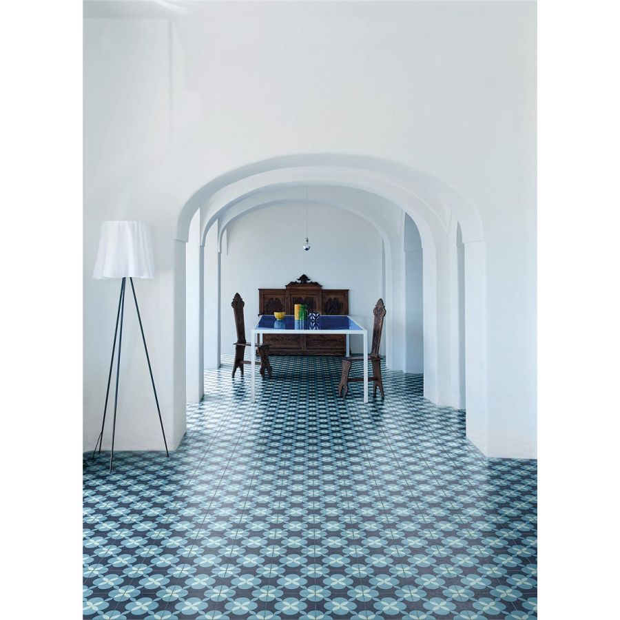Tiles made entirely by hand using high-strength cement blended with coloured oxides. Square (200x200 mm) or hexagonal in shape (200x230 mm), 14 mm thick, the tiles are cold pressed and treated to protect their surface and ease the cleaning.