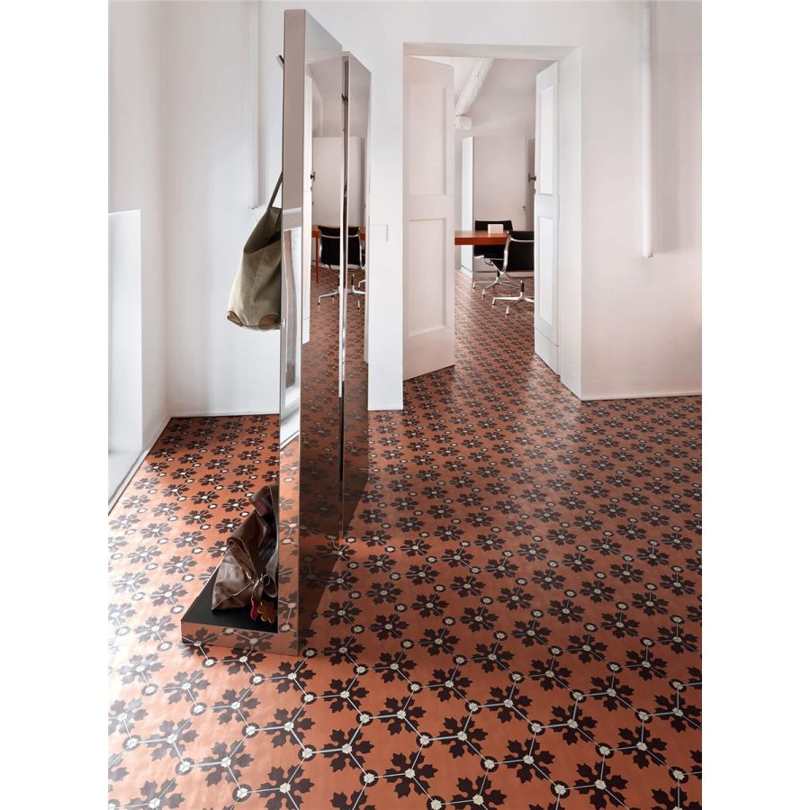 Tiles made entirely by hand using high-strength cement blended with coloured oxides. Square (200x200 mm) or hexagonal in shape (200x230 mm), 14 mm thick, the tiles are cold pressed and treated to protect their surface and ease the cleaning.