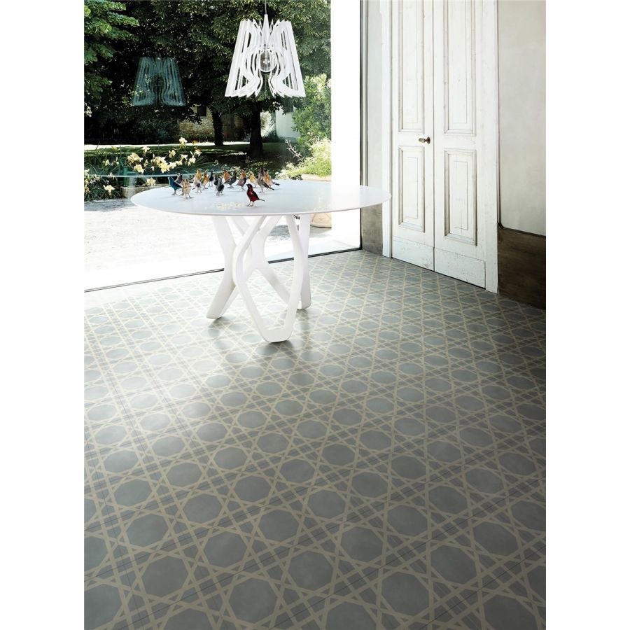 Tiles made entirely by hand using high-strength cement blended with coloured oxides. Square (200x200 mm) or hexagonal in shape (200x230 mm), 14 mm thick, the tiles are cold pressed and treated to protect their surface and ease the cleaning.