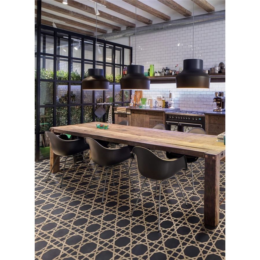 Tiles made entirely by hand using high-strength cement blended with coloured oxides. Square (200x200 mm) or hexagonal in shape (200x230 mm), 14 mm thick, the tiles are cold pressed and treated to protect their surface and ease the cleaning.