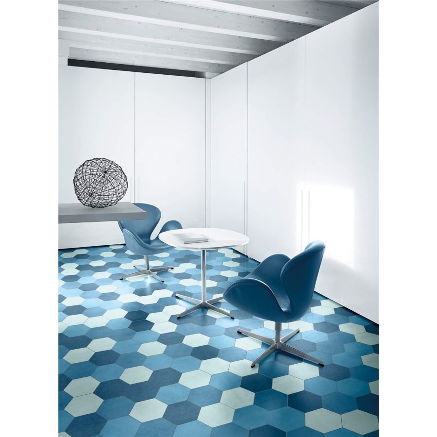 Tiles made entirely by hand using high-strength cement blended with coloured oxides. Square (200x200 mm) or hexagonal in shape (200x230 mm), 14 mm thick, the tiles are cold pressed and treated to protect their surface and ease the cleaning.
