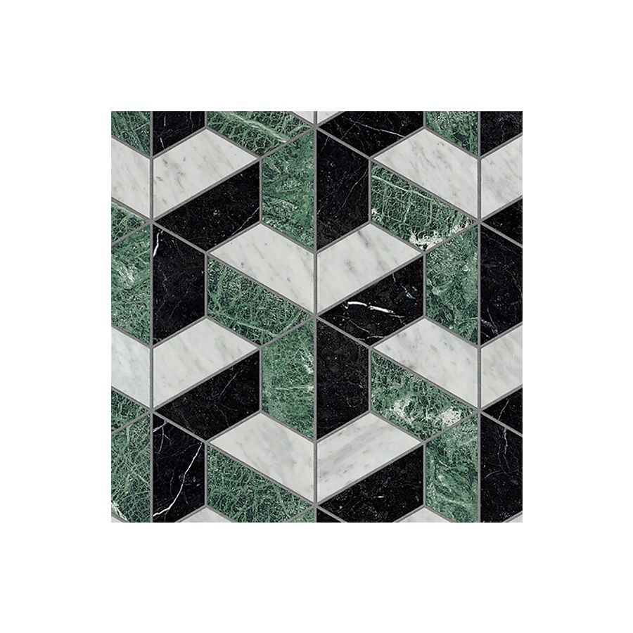 The items in the marmo collection, 1 cm thick, are honed, with a polished finish, and supplied in a ready-to-install units glued to paper mesh backing, with 2 mm grout lines.